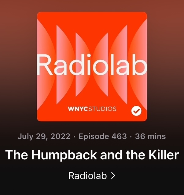This is a super interesting podcast that was recommended to me by my cousin. It was so different from what I usually listen to, and I found the altruism of humpback whales to be so heartwarming! It's a fascinating and quick listen, so give it a try.
